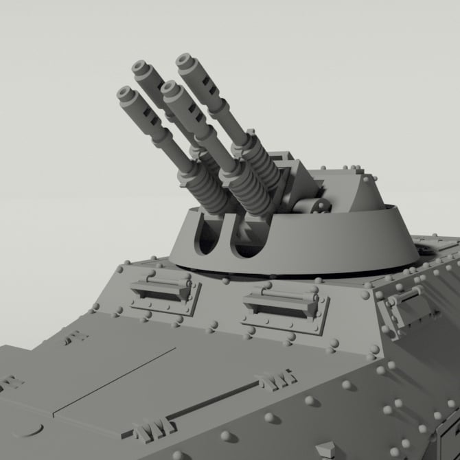 Flak Panzer "Kugelblitz style" AA Turret. Optional 2 barrel or 4 barrel configuration and can elevate. Compatible with Grim 251 or Grim Panzer IV.