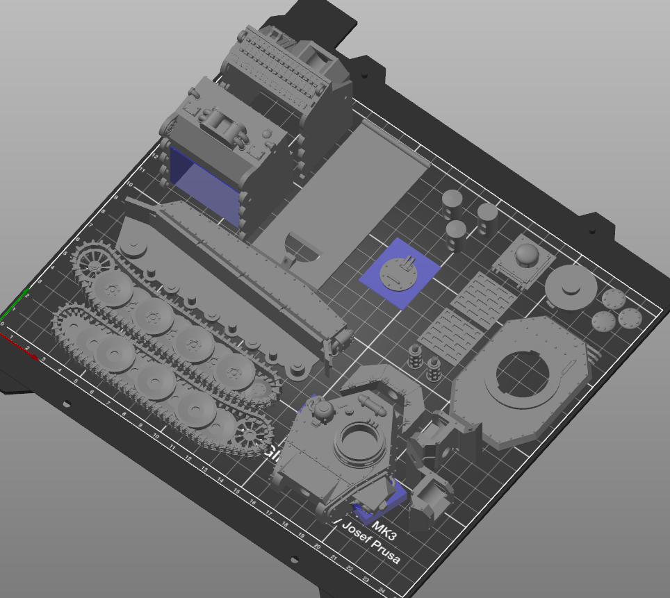 Tracks, sponsons and rear grill are mirrored. Minimal supports are required.